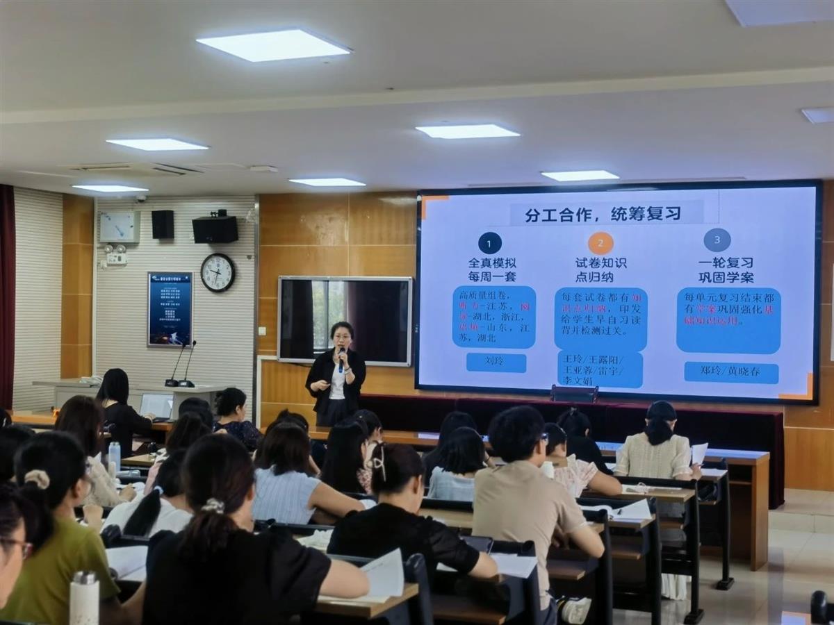 2024届高三英语备课组长刘玲老师分享了高三英语团队的不凡成就与秘诀。她强调,备课组成员心手相连,秉持团结协作的核心理念,以积极进取之姿,并肩前行。每位教师分工精细,职责明确,资源开放共享,构建起一座知识与智慧的桥梁。在复习征途中,创新性地采用两至三人小组模式,高效协同攻克各大专题复习,实现了效率与质量的双重飞跃,完美诠释了“团结就是力量”的真谛。教研活动中,更是精益求精,对教学内容与方式进行了深入细致的探讨,营造了一个充满活力、合作共赢的教学成长生态。在日常教学中,老师们珍惜每一分课堂时光,灵活运用策略激发学生兴趣,致力于培养学生的自主学习与创新能力。周而复始的周测,不仅是对学生学习状态的精准把脉,更是教师团队精心策划的提升之旅。考后,注重细致梳理试卷精华,通过听写、朗读等多种形式,促进学生知识的内化与吸收,确保每一套试题都能发挥最大效用,实现知识的二次升华与巩固。