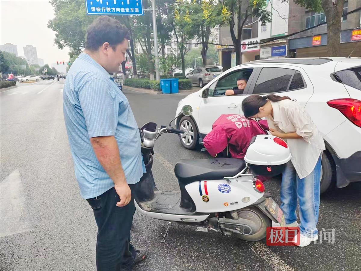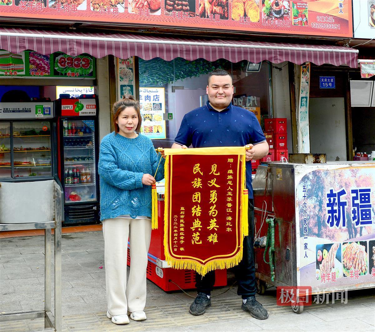 2023年,玉苏普江在监利街头遇到一骑车女子摔倒,他和妻子第一时间上前帮忙。(谢岳成 供图)