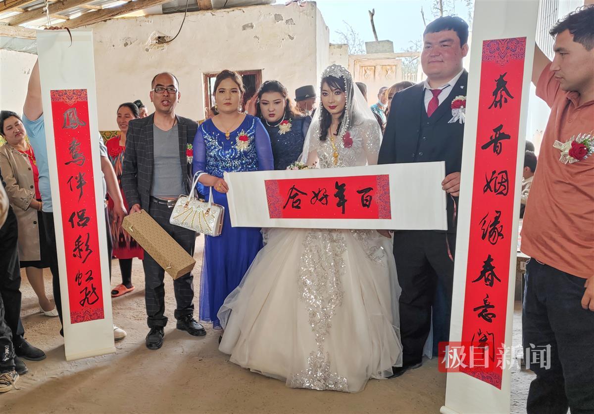 2023年4月8日,玉苏普江在新疆老家举行婚礼,监利市特地派代表送上新婚祝福。(段声华 供图)