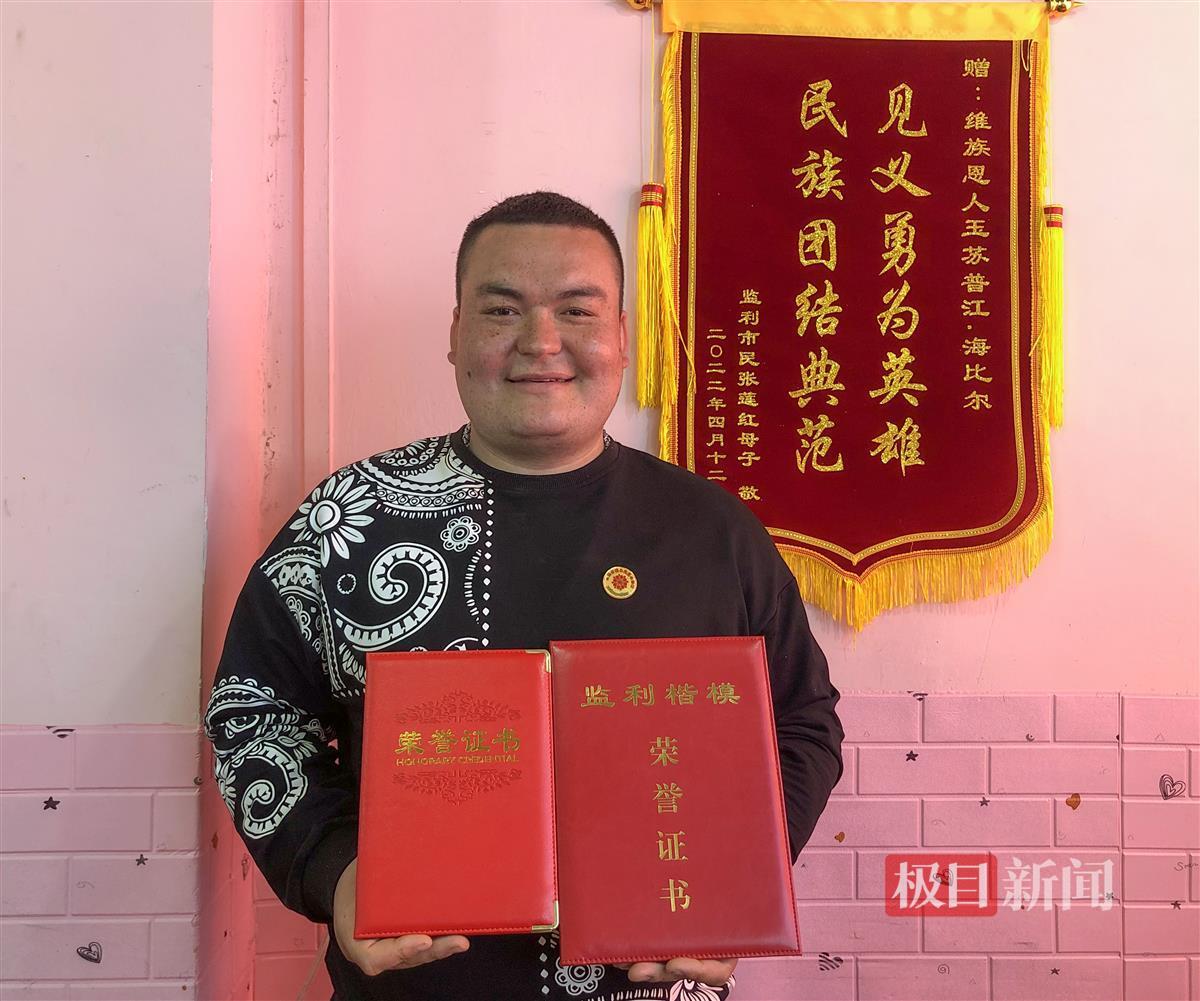 2022年4月18日,获得荣誉后的玉苏普江。(极目新闻记者 黄志刚 摄)