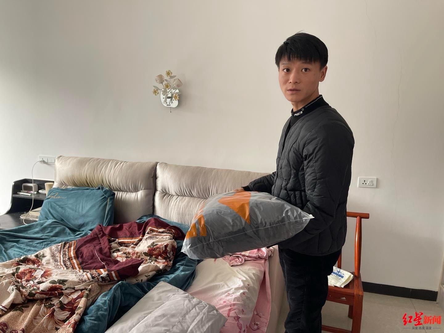▲邹诚俊生前向红星新闻记者展示网友捐赠的衣物