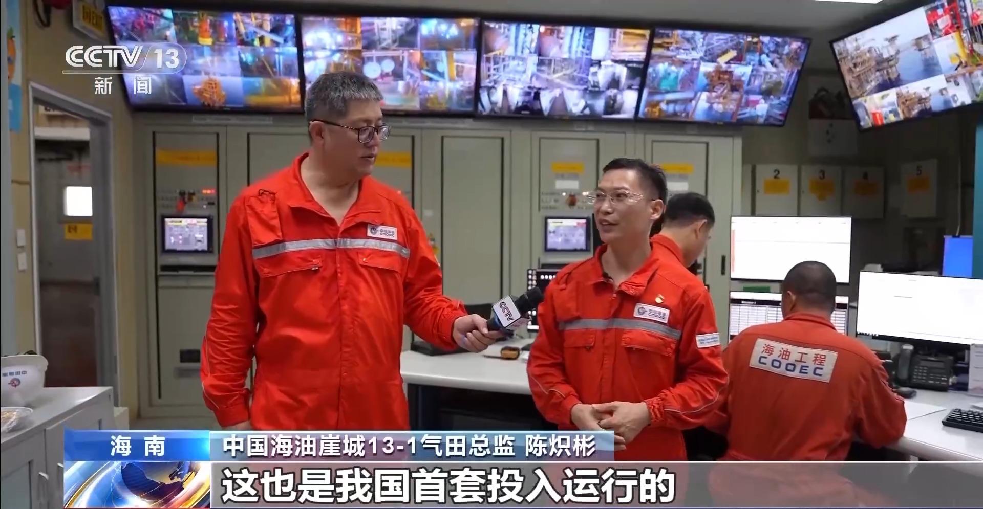 中国海油崖城13-1气田总监 陈炽彬:这里是崖城气田的中央控制室,也是我国首套投入运行的海上气田遥控生产装置所在地,工程师正在进行海上首台国产燃气透平发电机组合调试工作。“深海一号”二期的接入将使这套系统具备更加复杂的功能,实现对水面生产设备和水下生产系统的全面控制。