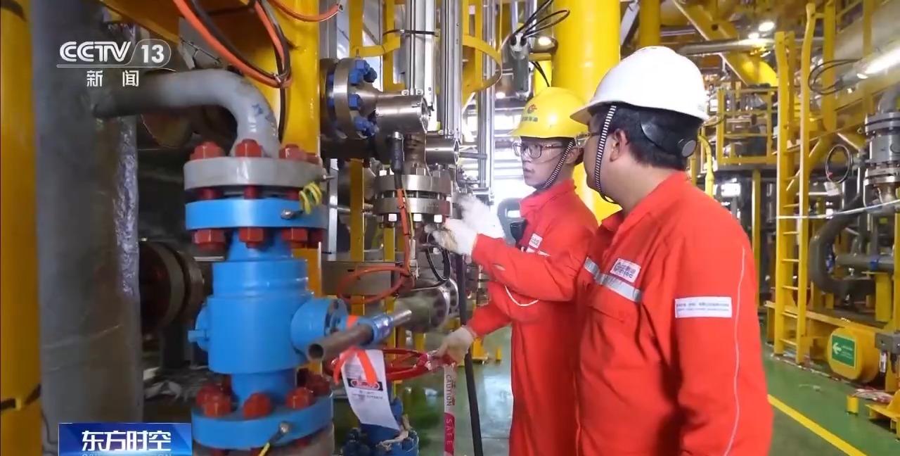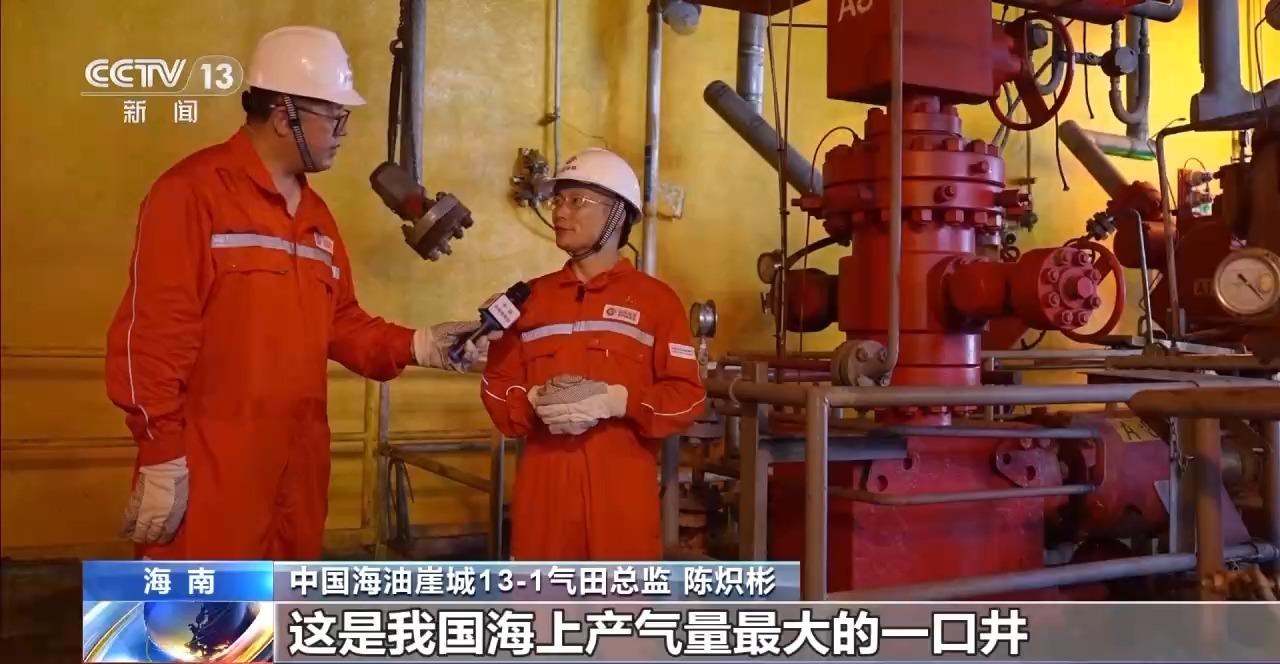 中国海油崖城13-1气田总监 陈炽彬:这是我国海上产气量最大的井,高峰产气量达280万立方米每天。气田已开发15口生产井,其中7口井天然气产量位居我国海上单井产量的前列,随着“深海一号”二期12口生产井投入生产,整个气田的天然气处理能力将进一步提升。