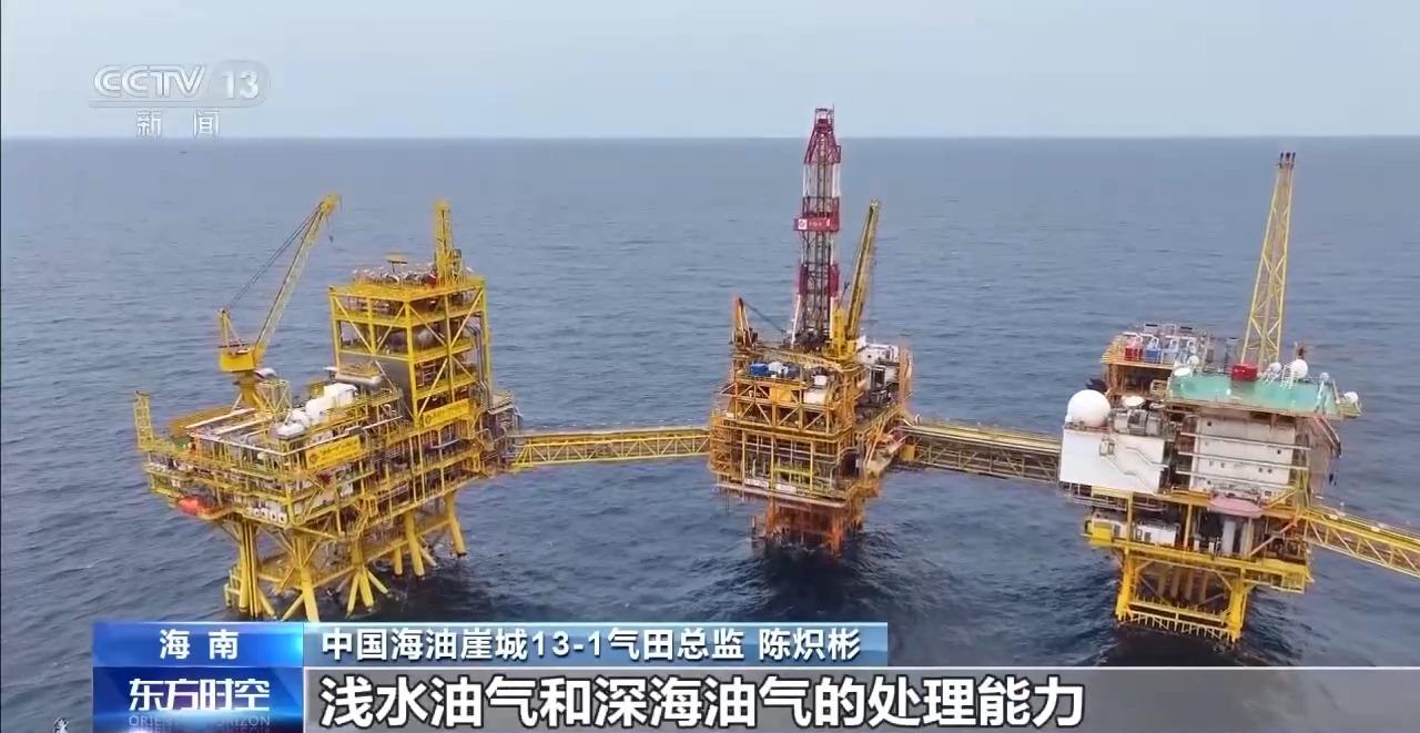 中国海油崖城13-1气田总监 陈炽彬:这是1996年最早投产的平台,海上天然气生产集群建设和空间站的建设非常相似,现在平台已经具备同时处理浅水油气和深海油气的能力。目前设施的处理能力达到1000万立方米每天。