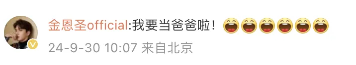 金恩圣在评论区留言:“我要当爸爸啦!”