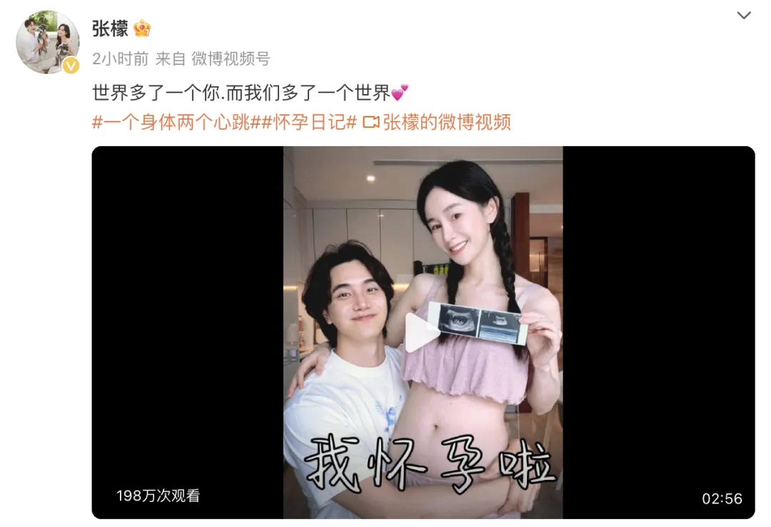 张檬配文:“世界多了一个你.而我们多了一个世界”,并发视频分享她老公金恩圣求婚,还有两人一同举办婚礼的视频,备孕一年终于迎来了两人的爱情结晶!