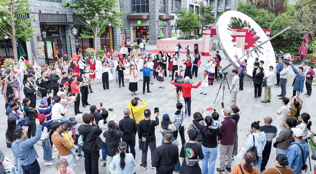 清澈的爱,只为中国。10月1日,全国知名音乐人、学生代表、武汉市民及游客在武汉城市地标“泛悦汇·昙华林”,用歌声向祖国献礼,祝福祖国繁荣昌盛!