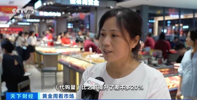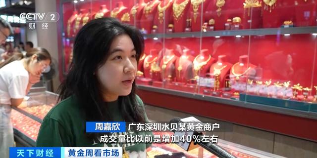 广东深圳水贝某黄金商户 周嘉欣:今天接待上百批客户,成交量比以前增加40%左右,客流量增加30%。
