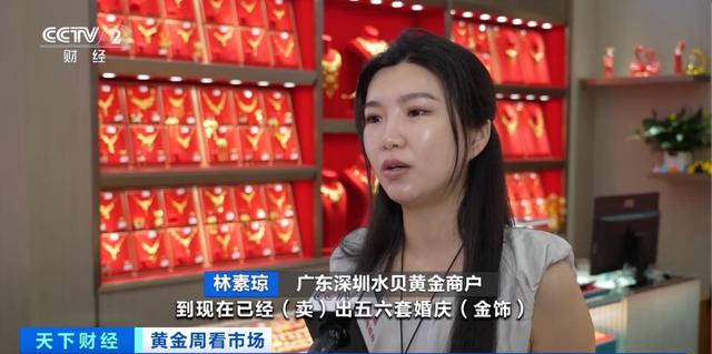 广东深圳水贝黄金商户 林素琼:到现在已经卖出五六套婚庆金饰,婚庆产品销量明显多了很多。