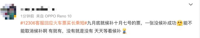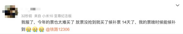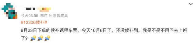 有网友表示,自己候补14天了还是没有成功。从九月底就候补十月七日的票,“天天等着候补”。