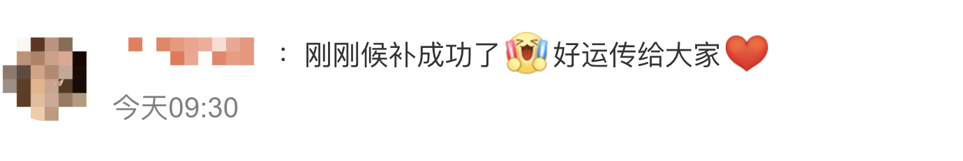 还有网友在线庆祝自己候补成功,引发“接好运”的跟帖。