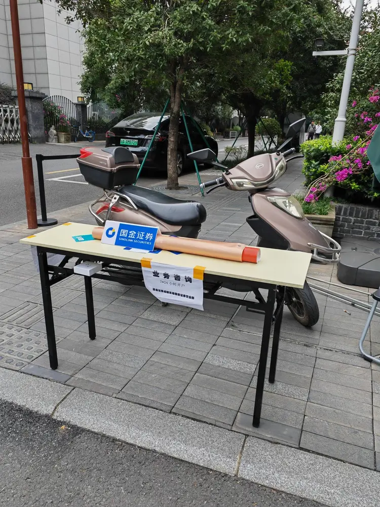 在大厦的桂花巷侧门,营业部就摆了个开户咨询的工作台。