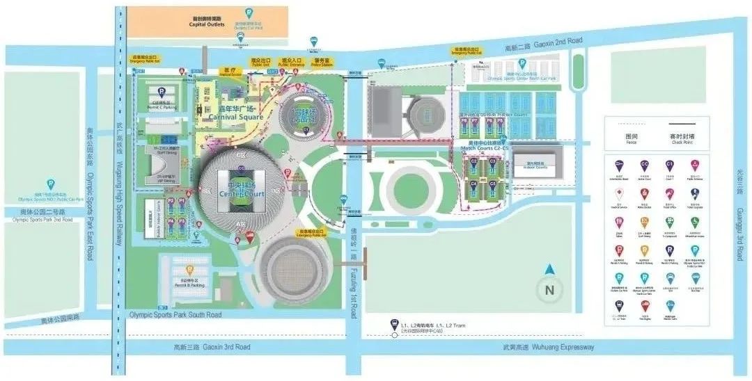 2024武汉网球公开赛场地平面图(可点击放大查看)