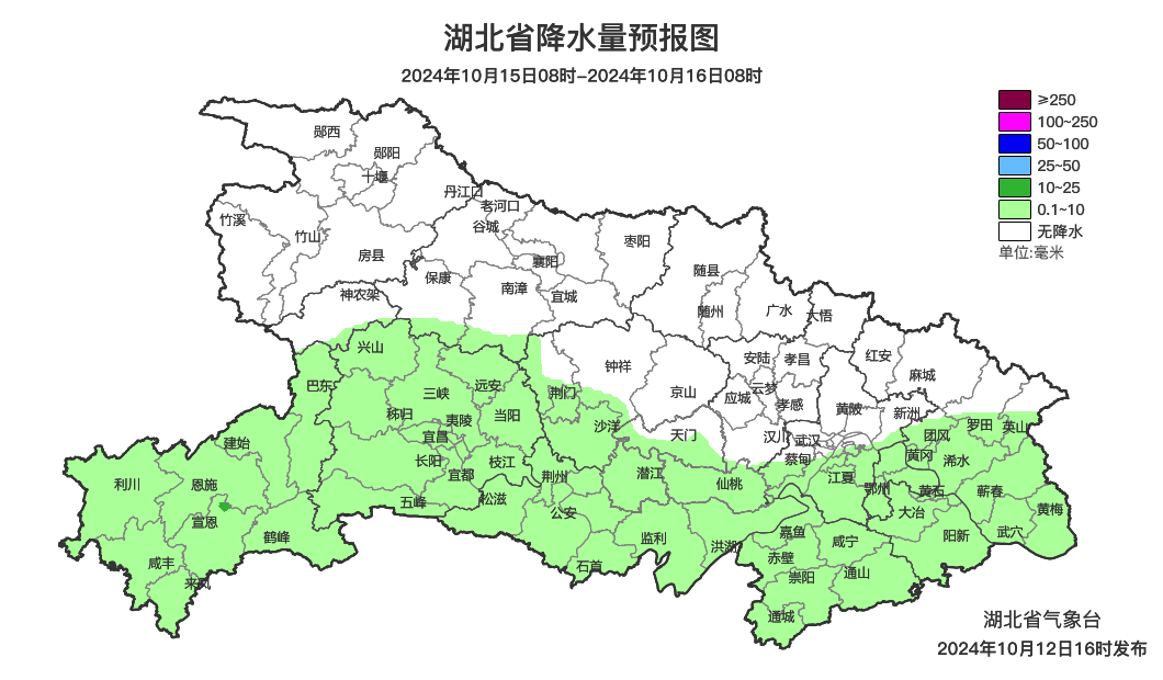 预报来源:湖北省气象台2024年10月12日16时预报