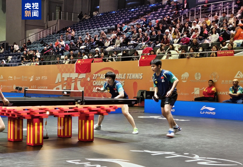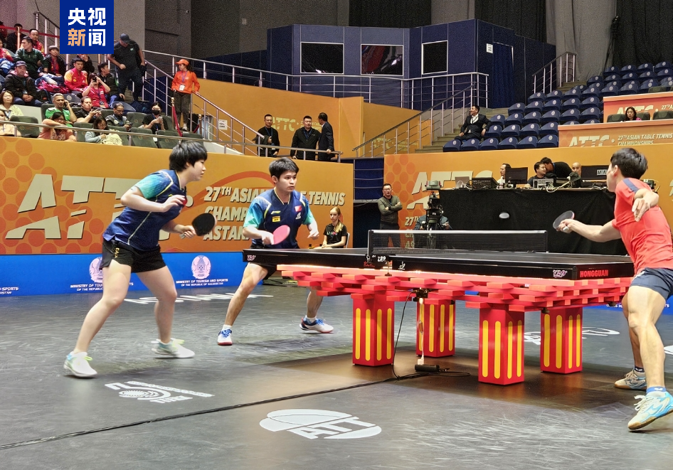 当地时间10月12日,在哈萨克斯坦阿斯塔纳举行的乒乓球亚锦赛混双决赛上,中国选手林诗栋和蒯曼3比1(9-11、12-10、11-9、15-13)战胜朝鲜选手李正植和金琴英,夺得决赛冠军。