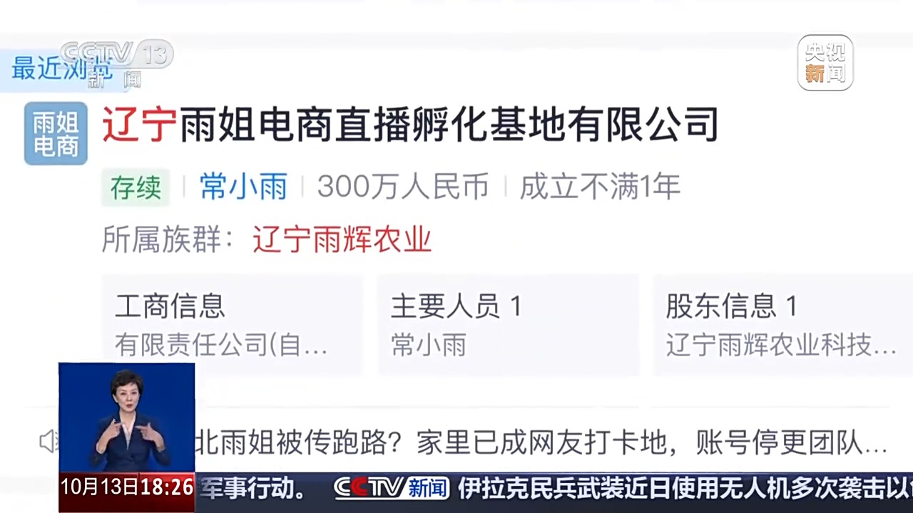 人们喜欢朴实真诚的大姐、喜欢充满烟火气的乡村生活,这些在“东北雨姐”团队看来就是流量密码。记者在调查中还发现“东北雨姐”夫妇名下注册了很多公司。第三个疑点,作为网络主播,直播带货注册这么多公司又有什么作用呢?从拍视频到直播带货,再到注册多家公司,“东北雨姐”的“商业帝国”背后有着什么不可告人的秘密?