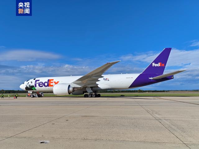 △当地时间15日,搭载大熊猫“宝力”和“青宝”的专机抵达美国。