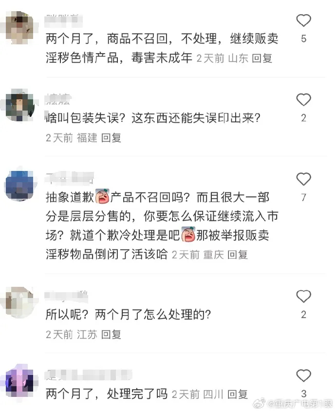 对此,网友并不买账。不少网友质疑,8月已针对不雅图案致歉为何10月该商品还在流通,并销售给未成年。也有网友表示,厂家不应避重就轻,此事涉及向未成年传播淫秽物品,不是应道歉了事。