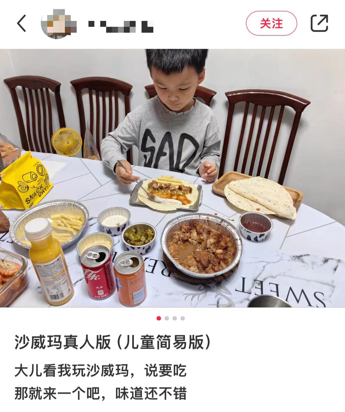 还有网友在家中复刻游戏沙威玛,给看着自己打游戏被馋坏了的孩子解解馋。