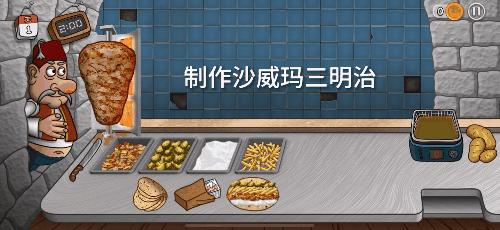 一上来,教程便会指导玩家学习最基本的沙威玛做法。比如先是把土耳其烤肉,一片一片削下来。然后通过反复点击,准备好炸薯条、酸黄瓜、酱汁。