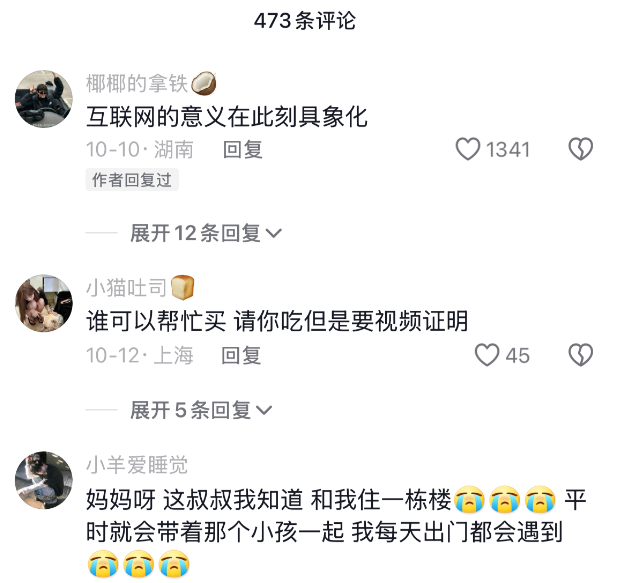 发帖的博主是华中师范大学的大三学生许同学,她说,起初是她和同学在校外聚餐,返校时遇到了这对父子,“当时天已经黑了,父子俩在微弱的灯光下摆摊,走近发现了叔叔写的牌子,看着蛮心酸的。”许同学说,最初她只发了条朋友圈,想着帮叔叔宣传一下,后来又在其他社交平台发了同样的帖子,没想到能吸引这么多网友的关注。“有很多人来问我叔叔的联系方式,还有外地像海南、云南的好心人也来支持,请我帮他们代买,然后再寄过去。”记者在许同学发帖的评论区发现,还有网友表示愿意出钱请吃水果、蛋卷,只要把付款记录发给他就好。