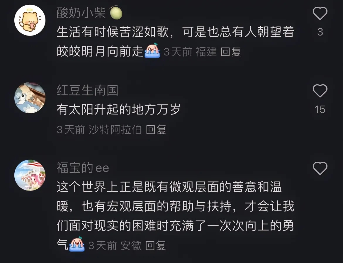 很快,许同学发帖的评论区被各种暖心留言包围,还有不少围观网友称赞道:“看到这个评论区,心里暖暖的。”“世界破破烂烂,但总有人缝缝补补。”“看哭了!”“真好,这才是互联网的意义!”还有细心的网友注意到,雷叔叔的微信昵称从“暗无天日”改成了“有太阳升起的地方万岁”。