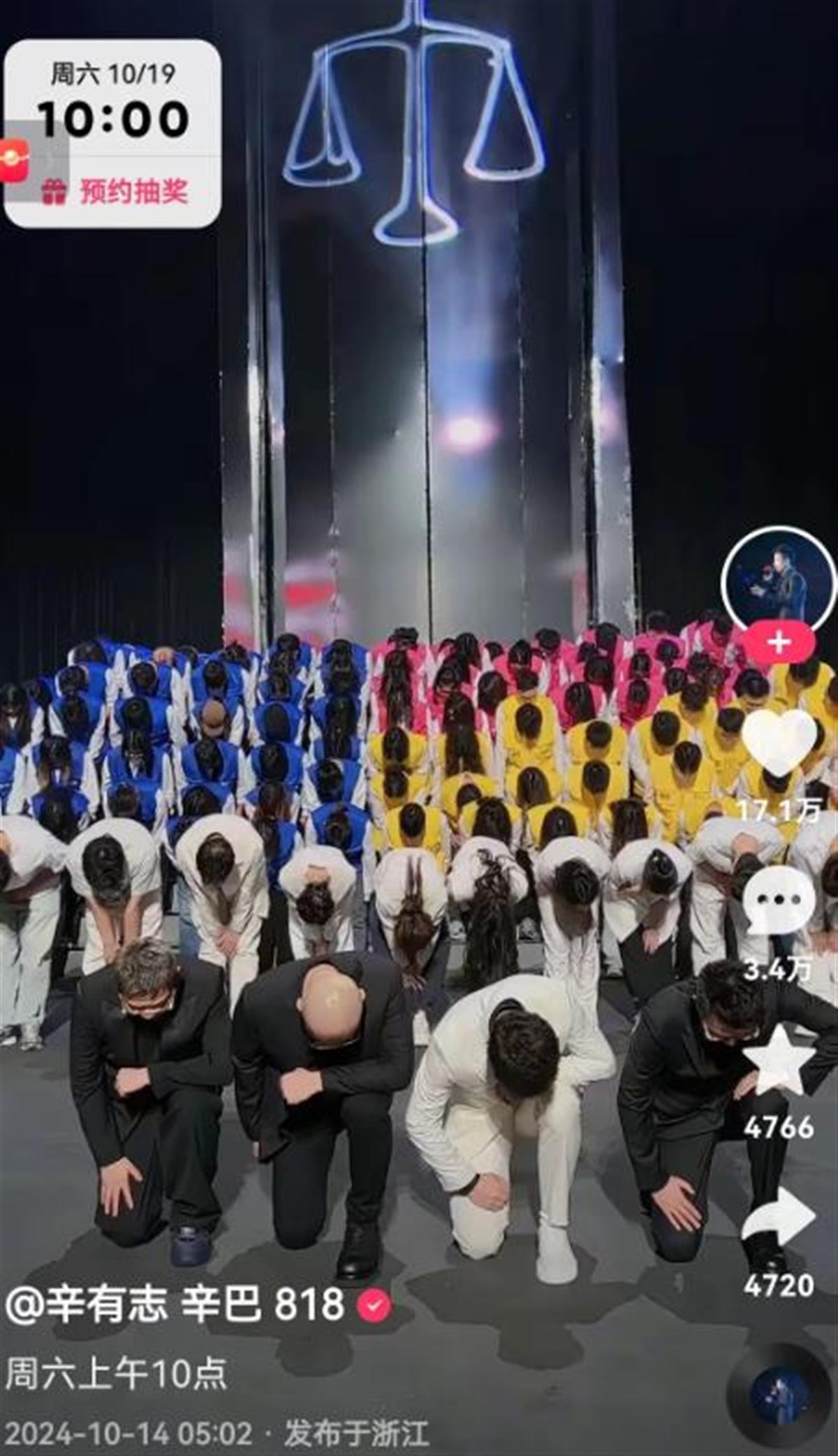10月14日早间,辛巴连发三条视频宣布回归。“辛巴携全体团队,向所有用户致敬。”在视频中,辛巴穿白衣白鞋,另外三名辛选创始人枷柏、张小双和宋铁牛穿黑衣服,单膝跪地。有人注意到,这条视频的背景是一个醒目的天平。最新发布的短视频中,辛巴再次提起了竞争对手,“对那些伤害、不负责任、没有底线,我们该愤怒。”