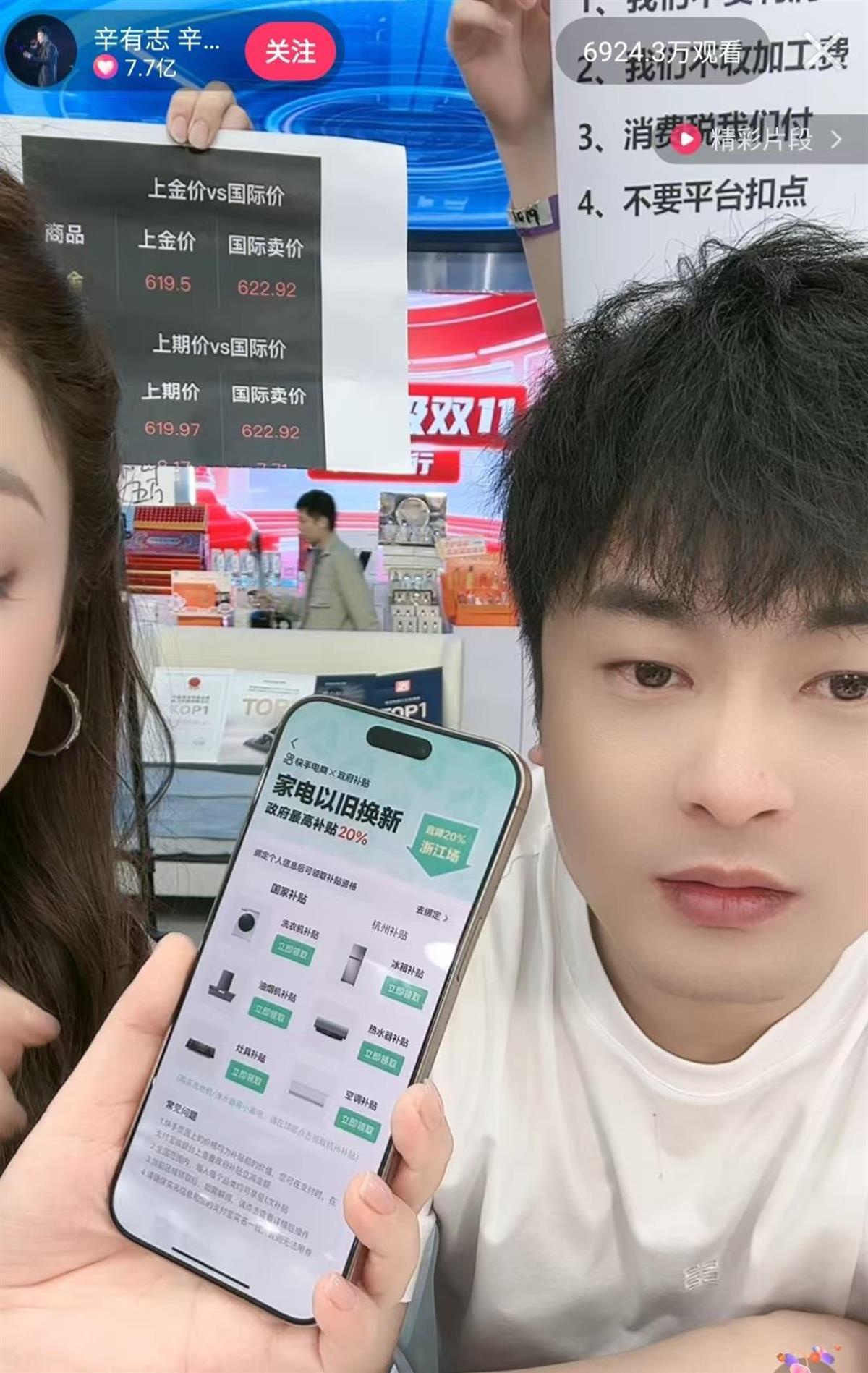 10月19日上午10时许,在快手平台沉寂了一个半月的带货“一哥”辛巴复播,首场直播持续8个半小时,6900多万人次收看。在休息了半个小时后,辛巴于当晚7时许继续直播。