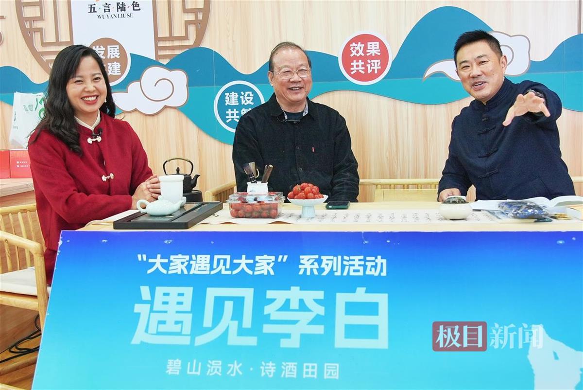 “海客谈瀛洲,烟波微茫信难求”“此夜曲中闻折柳,何人不起故园情”“别来几春未还家?玉窗五见樱桃花”……直播间不断“飘”过的一些诗歌,又让三人又与网友一起吟诵,分享了李白的“乡愁”。江珊介绍,李白的诗歌中饱含对安陆的依恋之情,其中有20余篇称安陆为“故乡”“故国”“故里”“故巢”“故山”“乡中”。