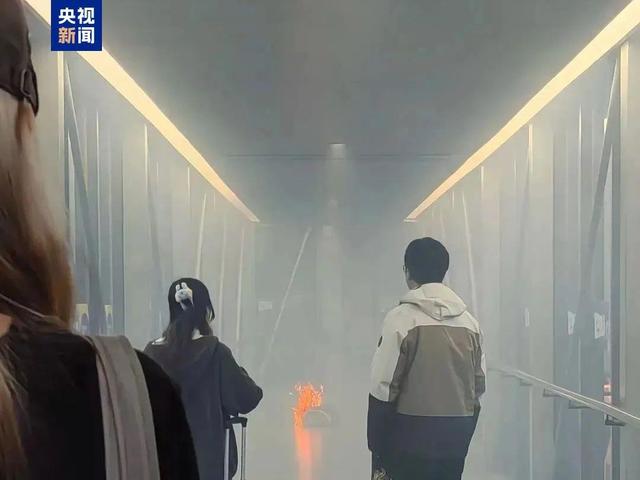 “我下飞机走到廊桥中间时,一名乘客的书包突然着了起来,火势瞬间变大,燃起滚滚浓烟,密闭的廊桥被浓烟灌满,后面还有人不断挤出来,前面也走不出去,工作人员还没来,有一瞬间感觉自己呼吸不过来要窒息了。”
