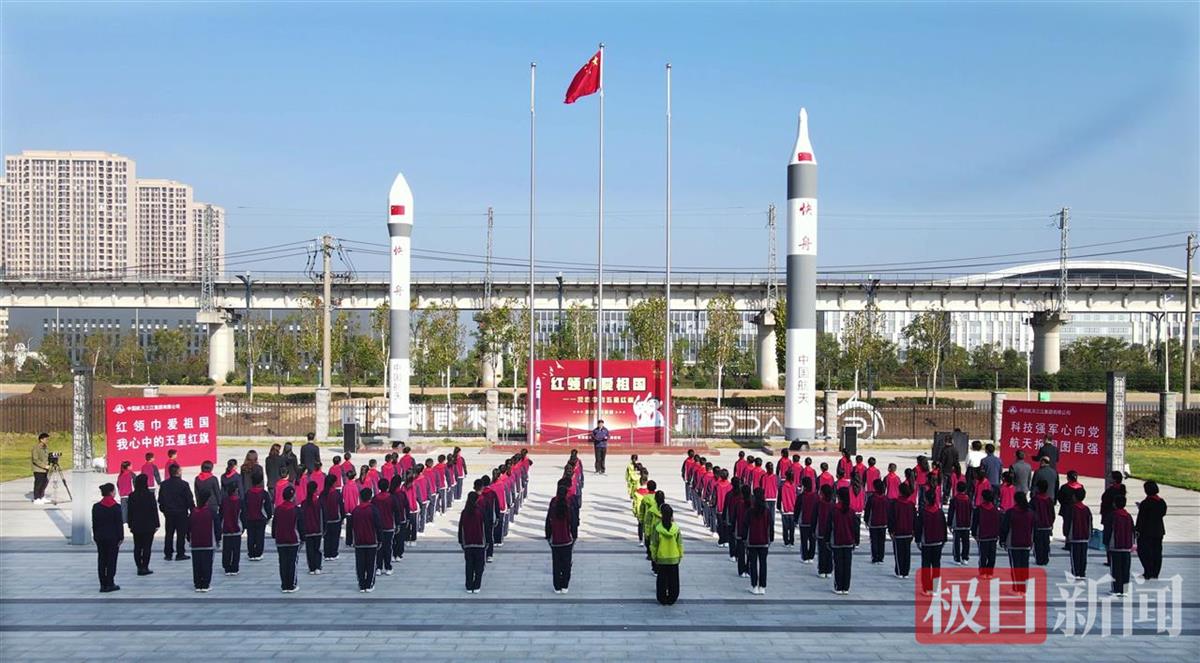 10月23日,由全国少工委联合中国载人航天工程新闻宣传办公室举办的“红领巾爱祖国——我心中的五星红旗”国旗传递活动,在湖北武汉国家航天产业基地快舟火箭产业园举行。