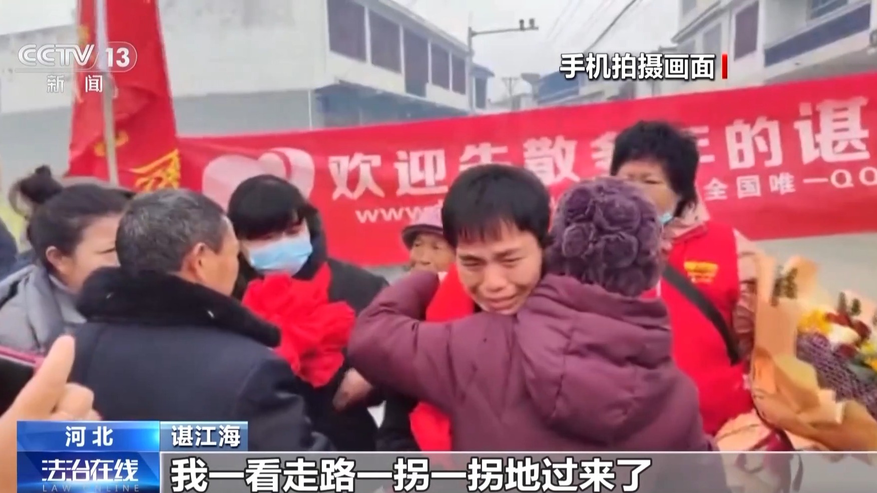 谌江海:我们见面当天,我一看有人走路一瘸一拐地过来了,我一看长得特别像,我就认得肯定这是妈妈,妈妈那时候还在找我,我就找过去了。当时俩人就拥抱到一起了,都在哭,反正我一看到她长得像我,眼泪就不自主地流下来,她的眼泪也流下来。