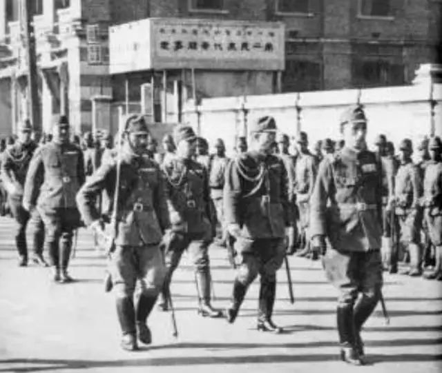 日军占领下的汉口中山大道,无辜的民众被手拿刺刀的日军驱赶,有家不能回
