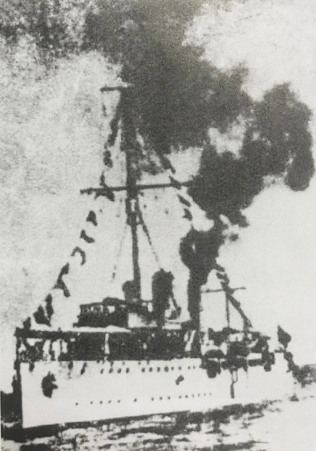 中山舰在武昌金口遭日军飞机重创沉入江底