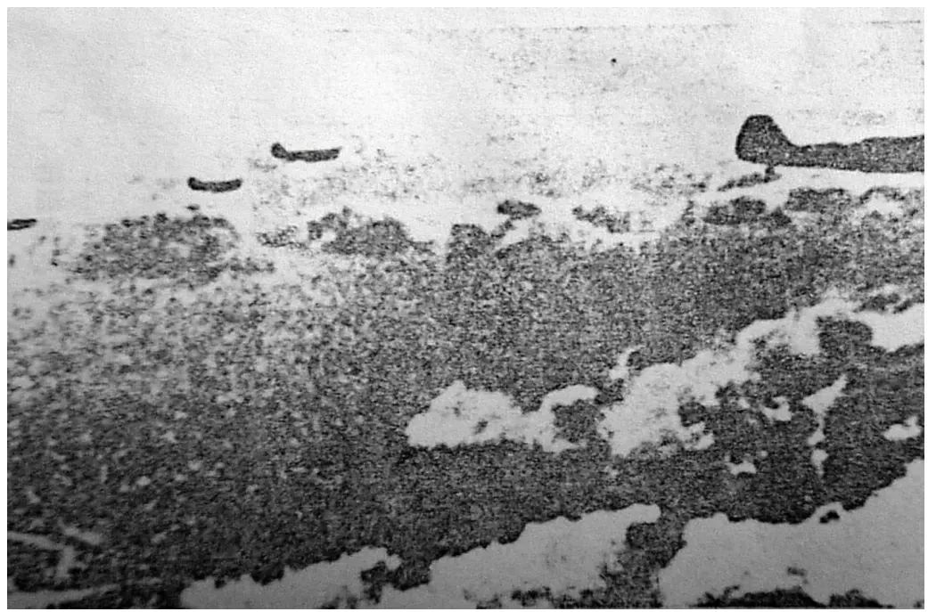 武汉会战期间,我空军与日机在武汉上空展开激战。武汉市民仰头观看空战的情形