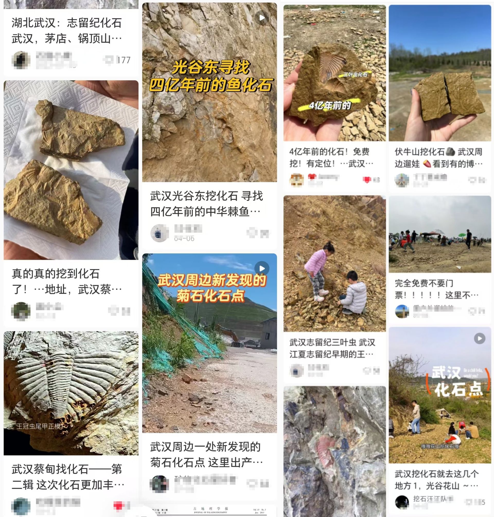 不少网友晒出在武汉各地挖化石的经历