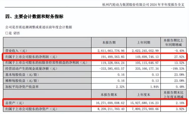 2024年上半年,杭汽轮的归母净利润为1.91亿元,同比增长27.92%;海联讯的归母净利润为287.64万元,同比下降46.82%。
