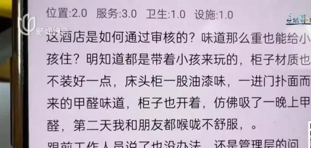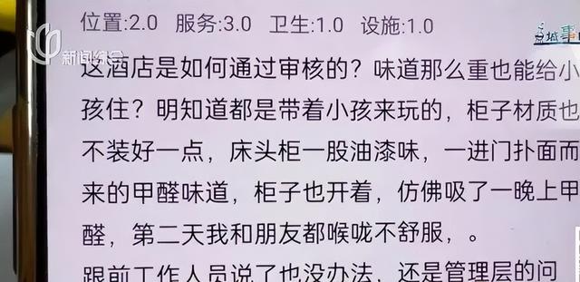 对于第三方"没有超标"的检测结论,袁女士表示怀疑,“不少消费者都曾留言反馈称这家酒店有装修异味,入住后发生了明显不适,出现胸闷、眼睛疼等吸入超标甲醛的症状。”