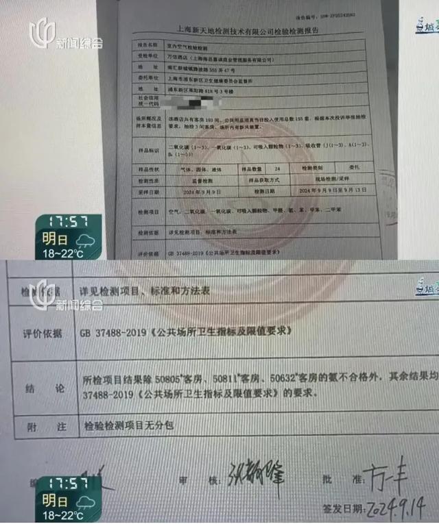 上海金桥海昌企鹅万信酒店前台工作人员向记者表示,酒店在开业前后多次做过第三方检测,空气质量均达标。记者看到,在卫生部门委托的第三方检测结果中,甲醛也全都合格,仅有少数房间氨不合格。