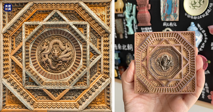 △网友在社交平台展示天宫藻井冰箱贴