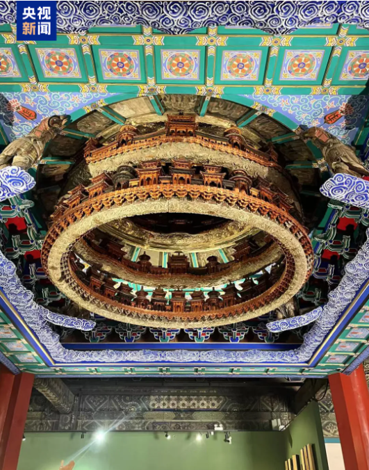 这处藻井最早是北京隆福寺的建筑构件,1976年受地震影响,隆福寺严重损毁,藻井也被拆成了散件。后来,这些散件被运到了北京古代建筑博物馆保存。经过长达5年的修复,才基本恢复了它的原始面貌。
