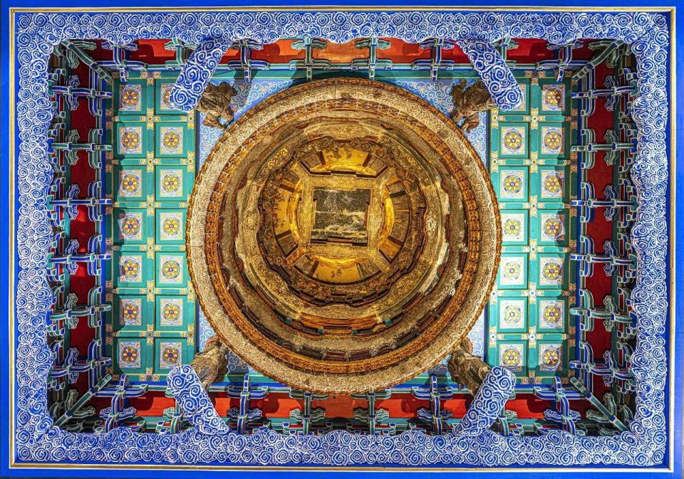 △万善正觉殿天宫藻井。“藻井”一般指建筑内呈穹窿状的“天花板”。