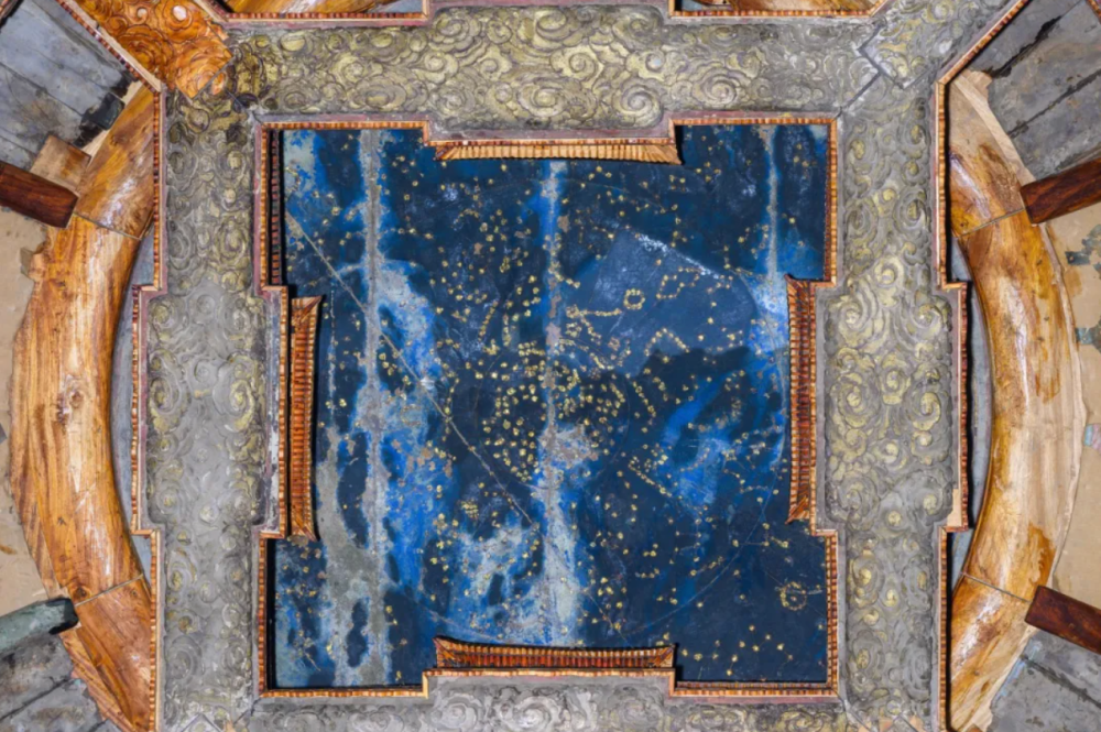 藻井四周所绘的二十八星宿图与星图遥相呼应,展现出古人对星象的认知和想象。