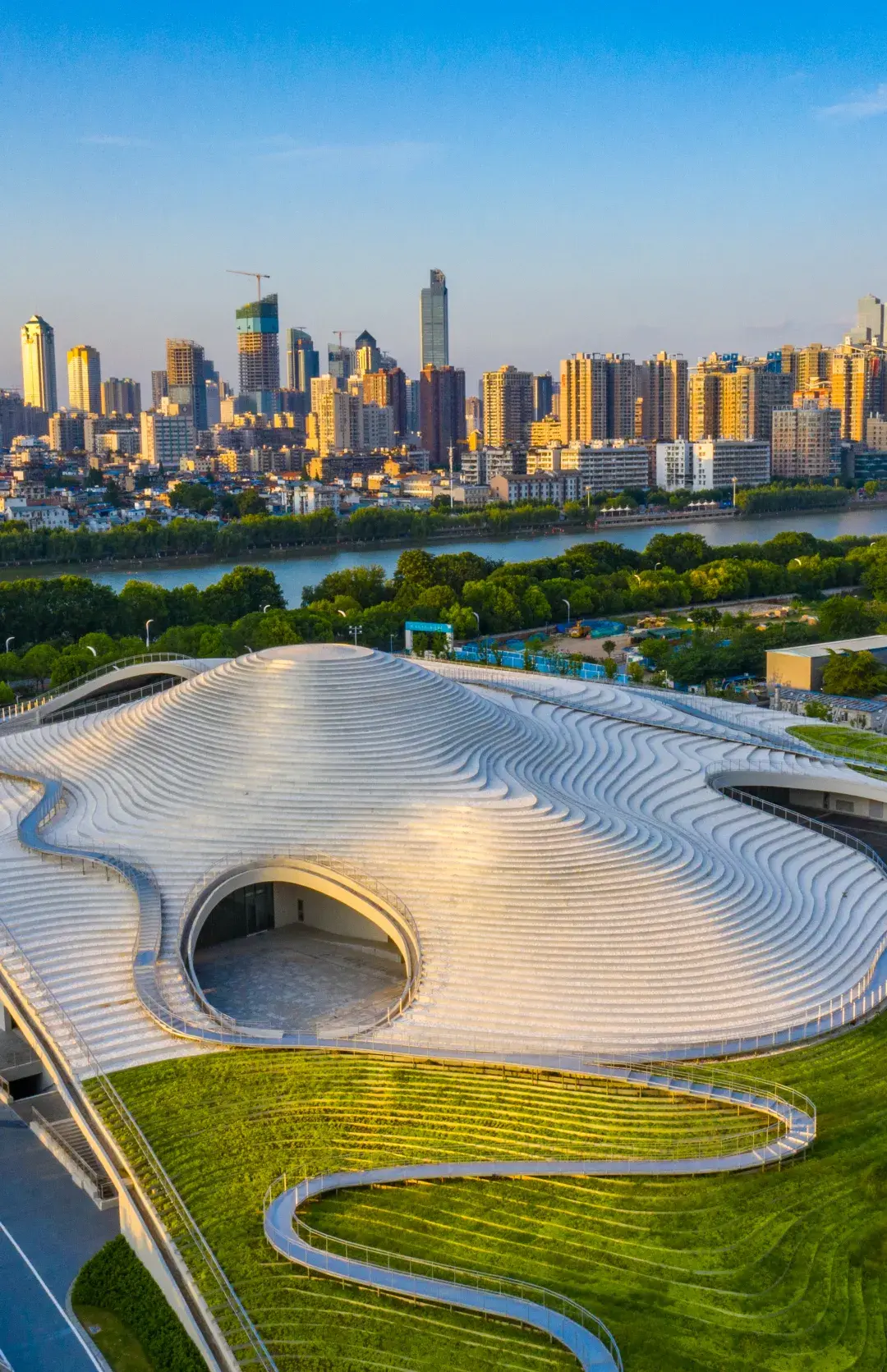 趁着秋日好天气出门看展,武汉美术馆(琴台馆)俯瞰望去,犹如银色梯田,不论是建筑本身还是展览,都是绝佳的拍摄地。