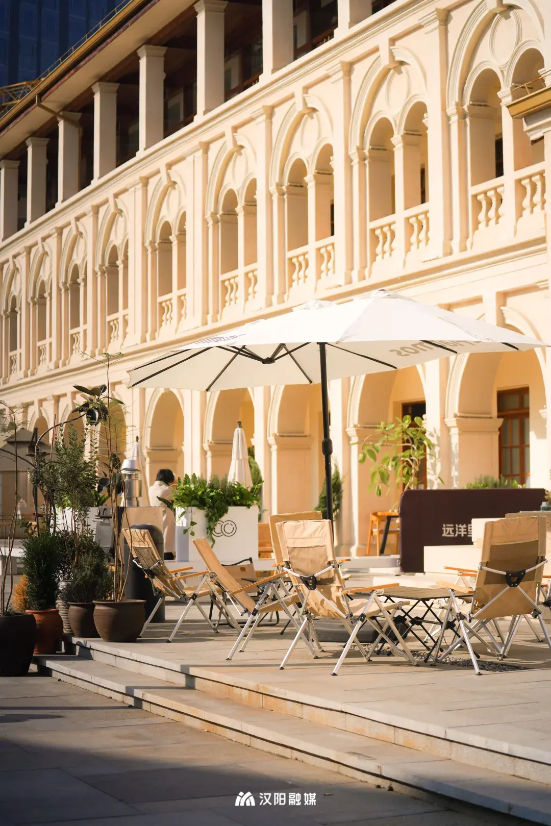 从汉阳树公园出发,踏入武汉城市漫游文艺新地标,汉阳百年地标圣母堂广场真的超出片,每家店铺门口都放置了多个露营桌椅,点上一份下午茶可以惬意一天。