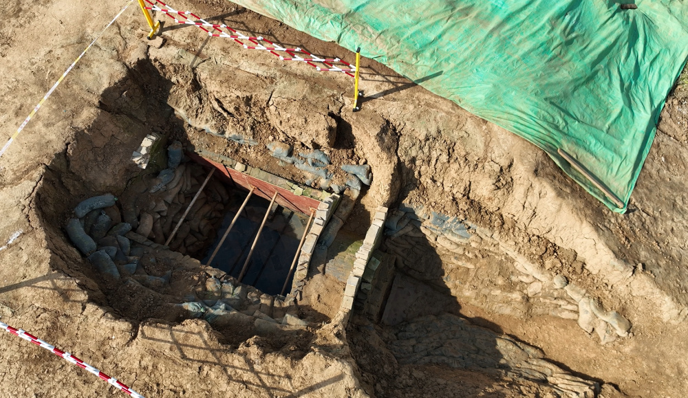 张昭家族墓位于南京南部新城的油库公园地块。记者在现场看到,张昭家族墓由8座墓葬东西向并排构成,墓向基本一致,均系土坑砖室结构,规模较小、形制相近。值得关注的是,墓葬后部还设有明暗结合的排水沟,形成一套规划有序的地下排水系统,且保存较好。