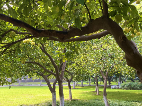 通常,香橼在果实成熟的时候,人们会把它切成薄片,然后晾干,用来入药。《随息居饮食谱》记载香橼常与化痰止咳药同用,作为一种中药材具有疏肝理气、利膈止呕、化痰等功效。然而在园林绿化上,人们更看重它的观赏效果,不宜采摘与食用,最主要的原因是口感不好,其次日常游园为了它更好地生长也做了一些病虫害药物的防治处理。
