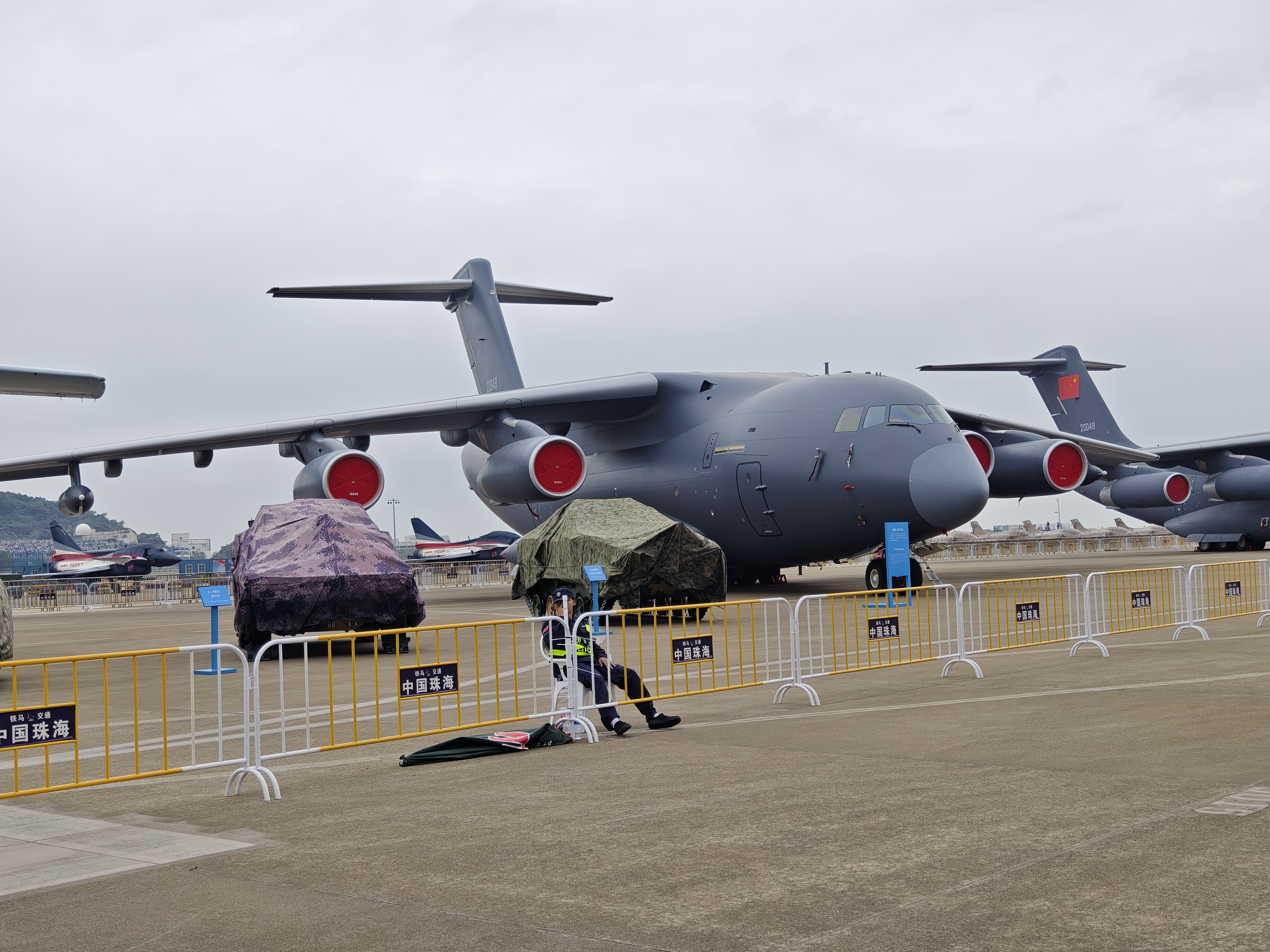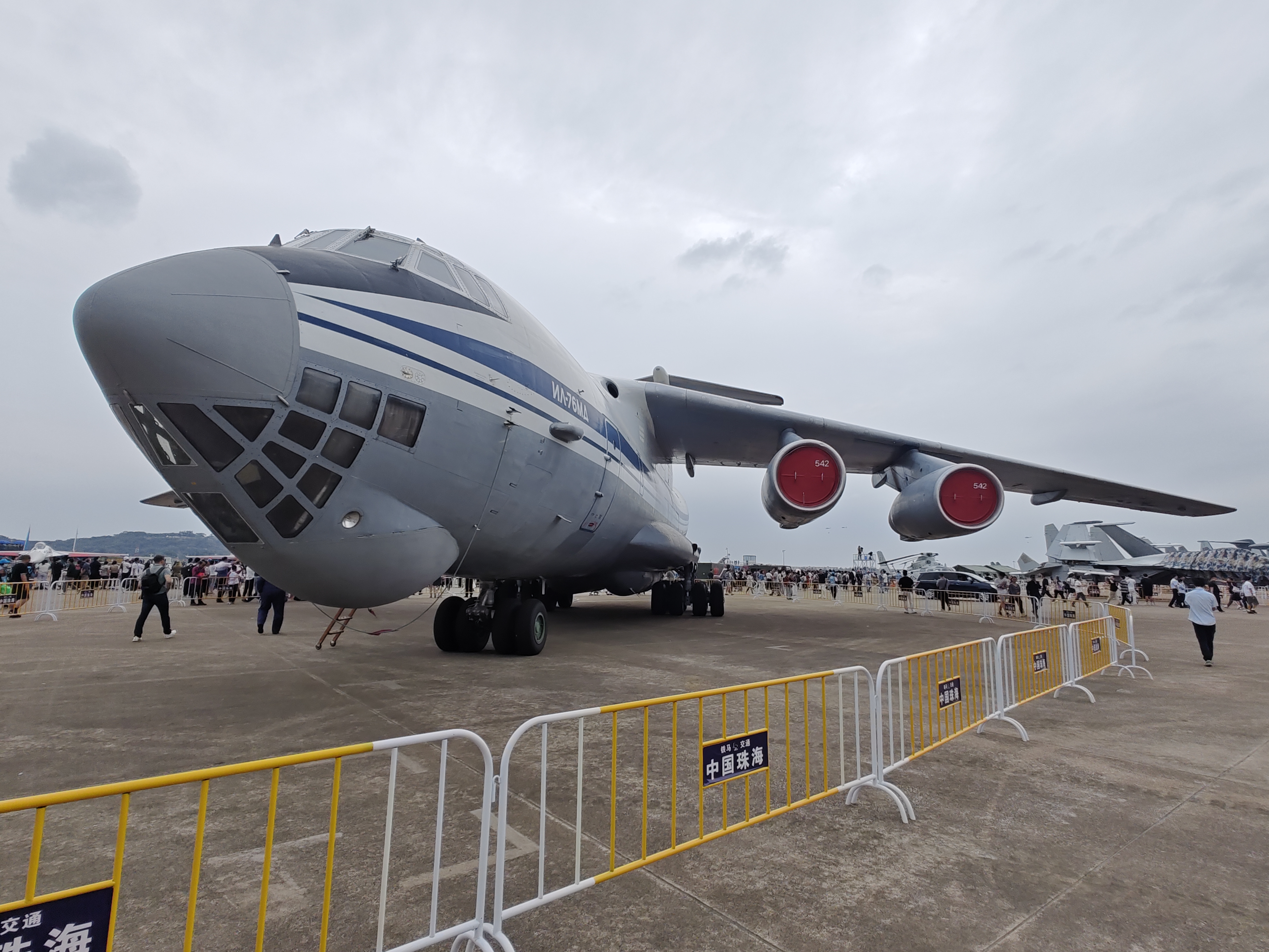 在运-20诞生之前,中国空军的主力运输机是运-8中型中程运输机和少量俄罗斯伊尔-76大型运输机,运-20即由中航工业西飞公司以伊尔-76为蓝本研制。在航展现场,一架伊尔-76MD运输机也十分抢眼,当天空下起小雨,观众纷纷聚集到其翼展50.5米的机翼下避雨。