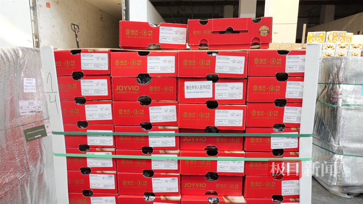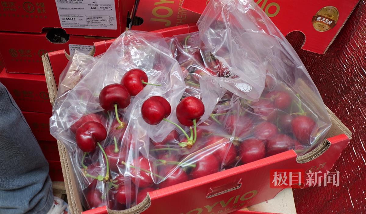 “我们这是华中首柜包机直达的车厘子,一到市场就已提前订购出去三分之二了,得益于新鲜采摘产地直发、顺丰冷链空运到市场,确保了车厘子的新鲜度和供应链的稳定性。”信和精品果业的负责人祁振国介绍。