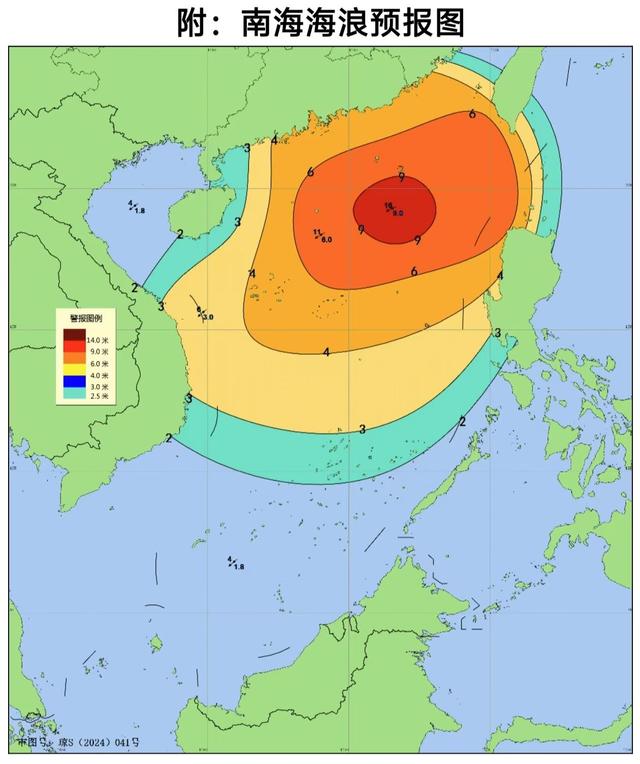 东沙附近、中沙附近海面有6.0~9.0米的狂浪到狂涛。